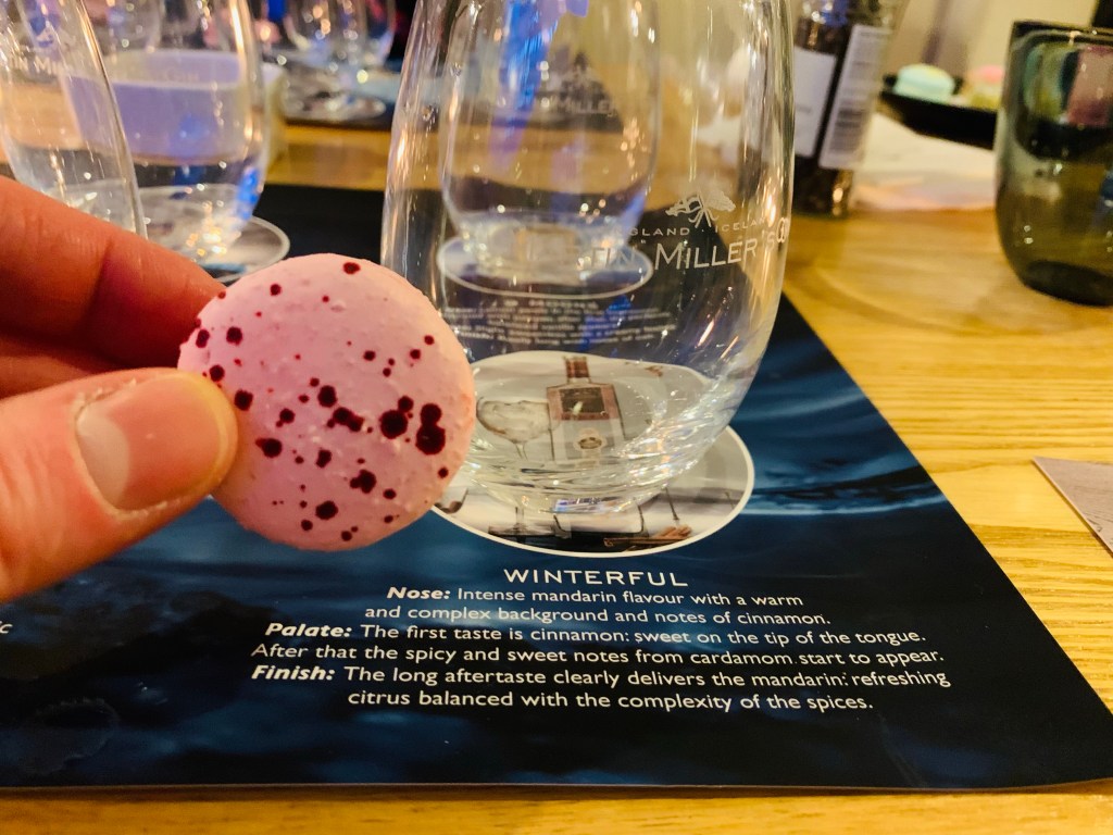 Now I’ll be honest – gin and macarons as a pairing isn’t something that I would have naturally put together, owing to the high sugar content and the concern that it could mask the more delicate profiles of the neat spirits. But this was to be no ordinary gin tasting…each macaron had been carefully designed and tailored to complement the characteristics of each of the gins, the flavours aiming to heighten and enhance the drinking experience.