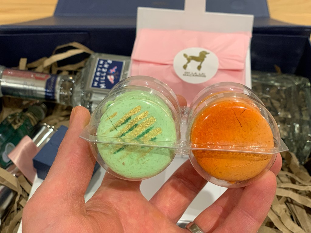 Inside you ask? A bottle of the Martin Miller’s flagship gin, a miniature of the vibrant Summerful Gin, a variety of assorted bar tools and a beautifully presented box of bespoke macarons that had been baked specifically for the occasion; ‘Rosemary & Artic Thyme’ and ‘Cinnamon & Mandarin’.