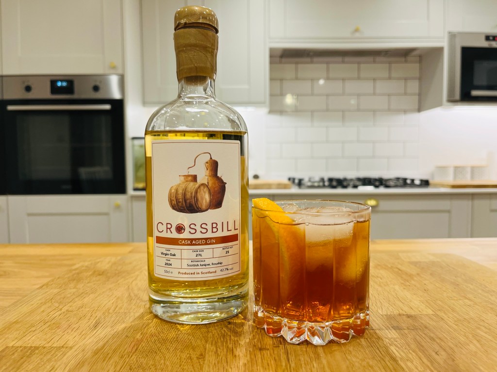 So before this introduction starts to be misconstrued as wallowing in self pity, or the juxtaposition of gloating over a Benjamin Button-esq aesthetic that defies the number on the birthday badge, let’s move on to the subject of this review; Crossbill Barrel Aged Gin.