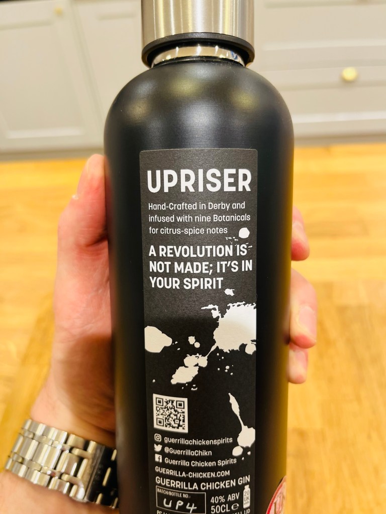 What I’d really like to see now is the Upriser hitting the gym to boost its power (ABV), or even a new heavy weight champion to be created in the form of a Navy Strength Gin. Could it be named ‘The Silverback’ (different Gorilla I know!), presented in a silver stainless steel bottle? You tell me Guerrilla Chicken…you tell me…